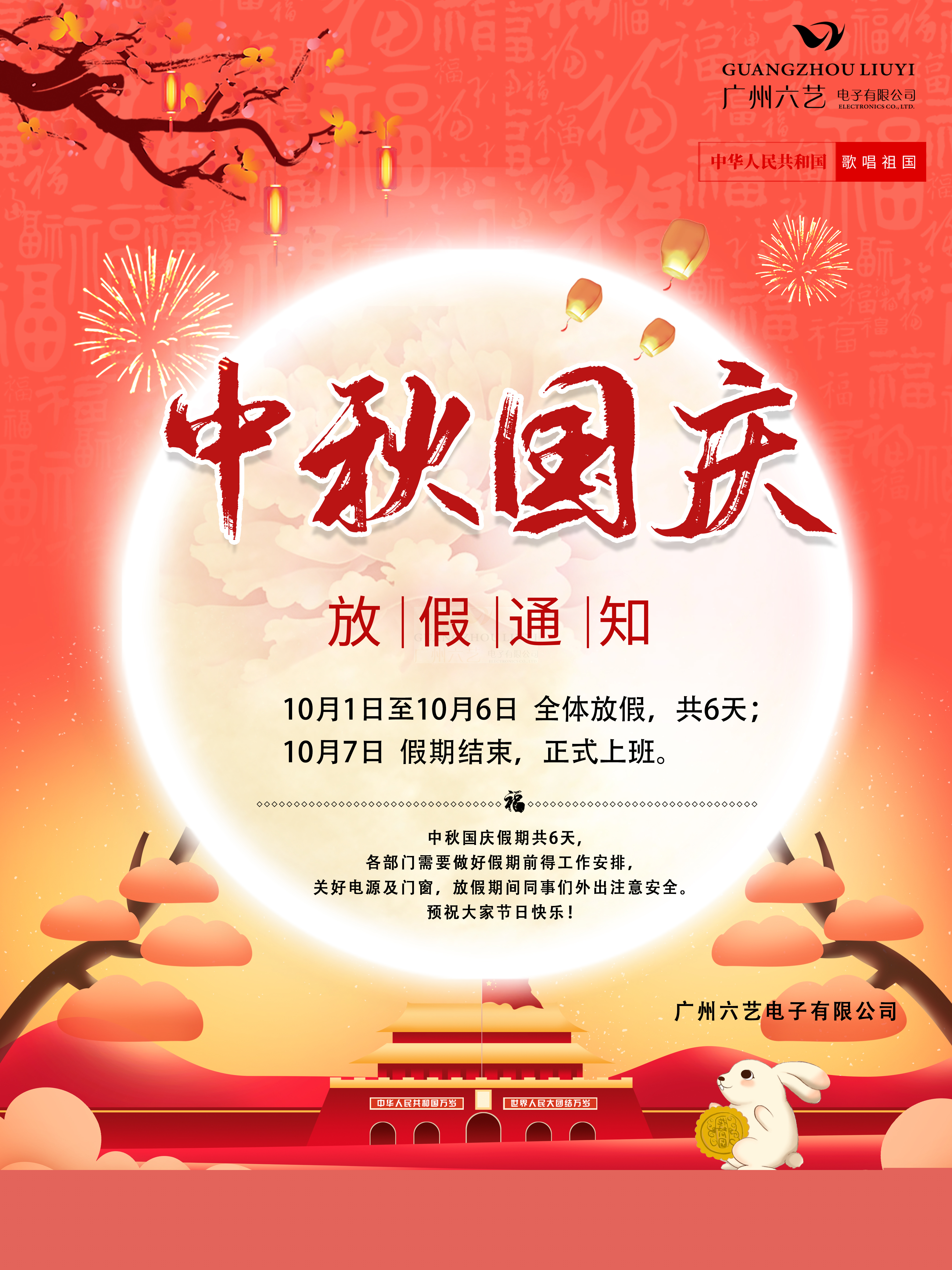 在這金桂飄香的季節,我們即將迎來祖國71華誕。2020年國慶恰逢中秋,中秋節圓月當空,我們共享佳節月餅的甜美;國慶節紅旗飄揚,我們同慶祖國華誕的榮光。廣州六藝全體職工提前向您送上節日的問候!